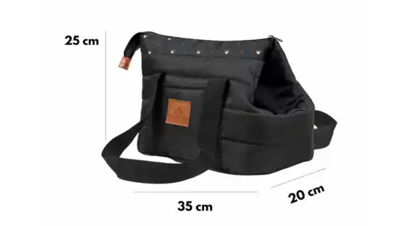 • Funkcjonalność – Torba ma kieszonkę na drobiazgi, zamykana jest na zamek, a wewnątrz znajduje się krótka smycz, zapewniająca bezpieczeństwo pupila podczas podróży.